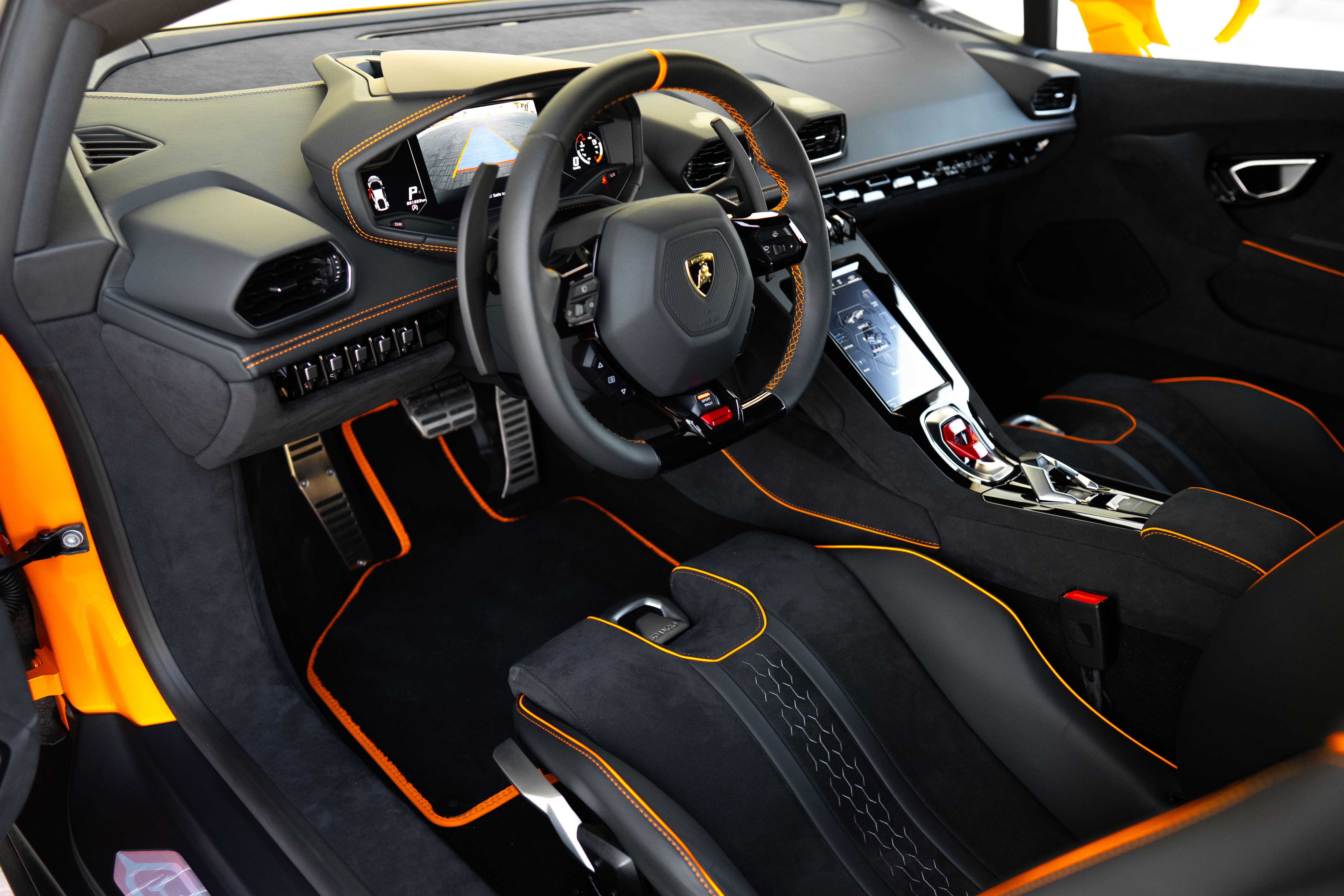 Inside, the Huracan Sterrato offers a cabin that balances luxury with durability. The black Alcantara interior is not only visually stunning but also built to withstand the rigours of off-road driving. Every detail, from the stitching to the ergonomic seats, is designed with the driver in mind. The intuitive controls and advanced infotainment system ensure that, even when you’re off the beaten path, you remain connected and in control. The Sterrato’s interior is a testament to Lamborghini’s commitment to creating a driver-focused environment that doesn’t compromise on comfort or style.